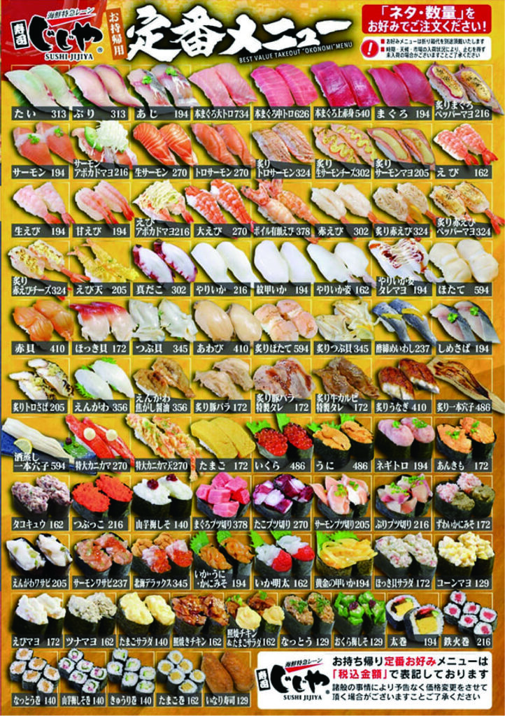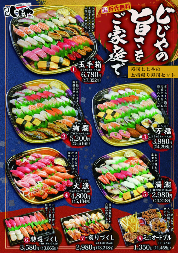 ※お持ち帰り定番お好みメニューは「税込金額」で表記しております。諸般の事情により予告なく価格変更をさせて頂く場合がございますことご了承ください。