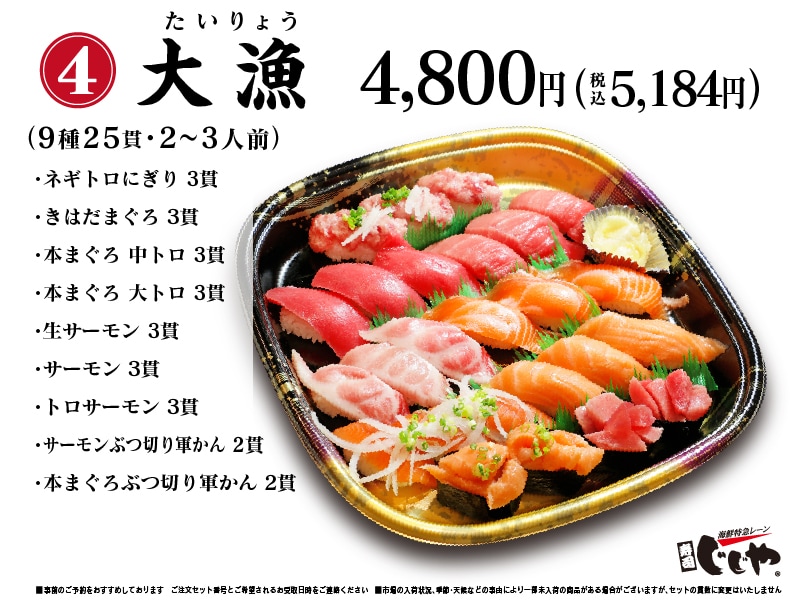 持帰寿司セットの画像をクリックすると内容を表示します