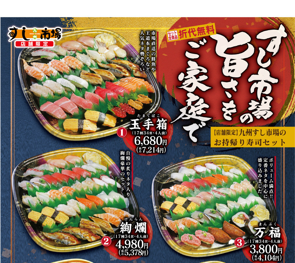 九州すし市場 店舗限定のお持ち帰りセットメニュー